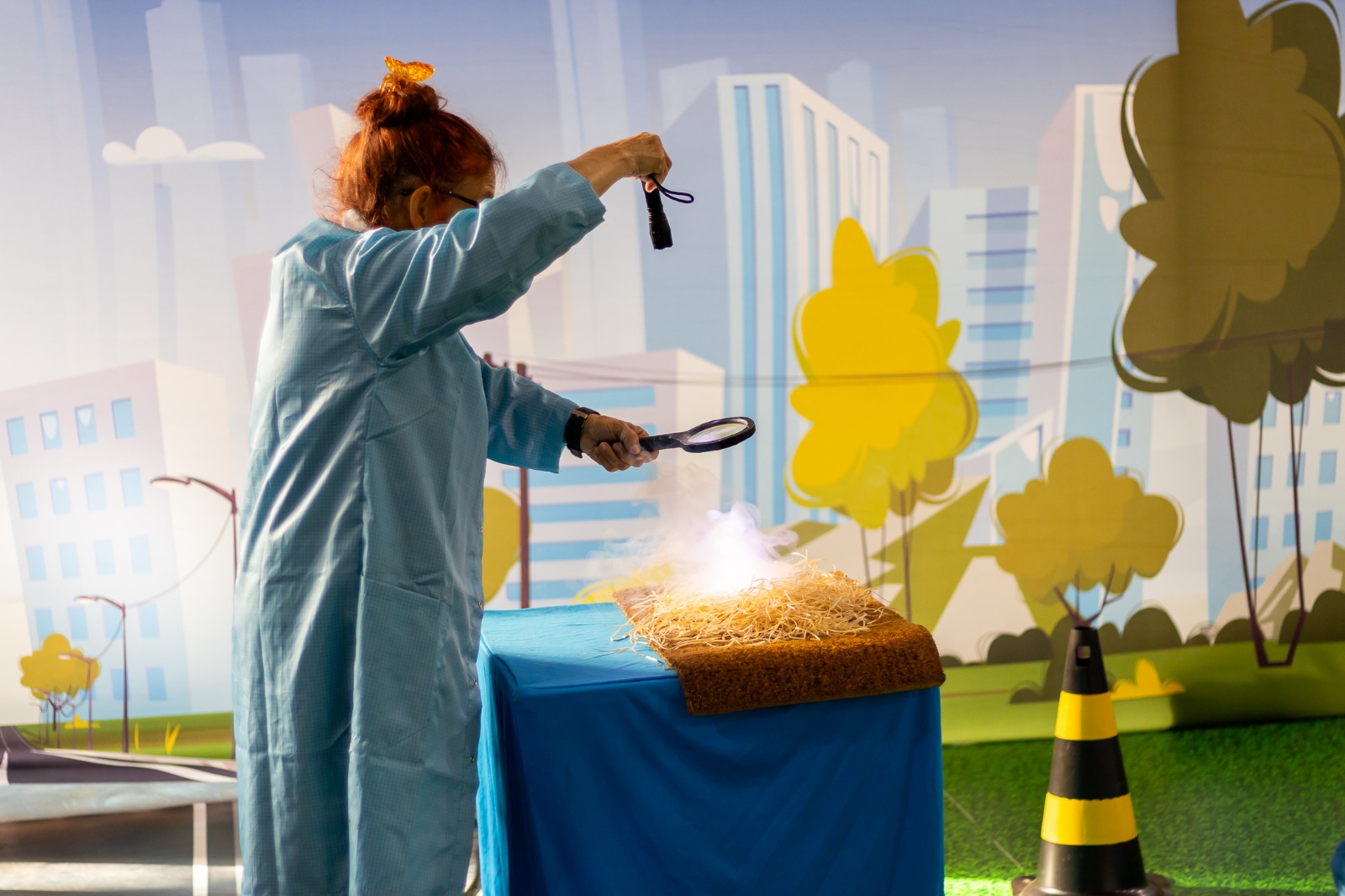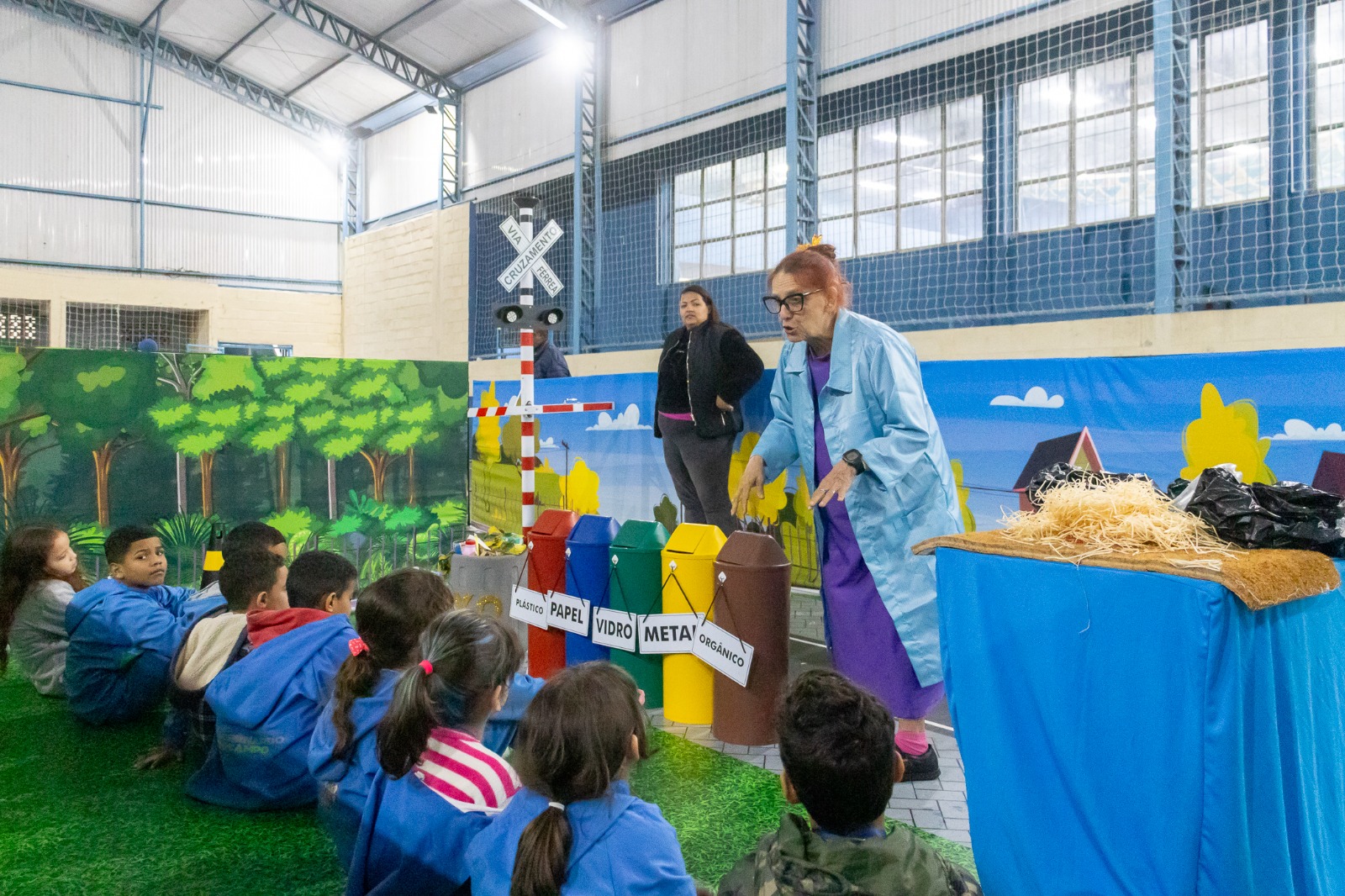 Junto aos atores, as crianças montaram o cenário formando uma cidade, com todas as melhorias necessárias. Uma equipe de monitores esteve disponível para auxiliar as crianças, no entanto, elas tiveram autonomia.