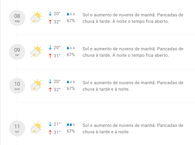 Confirma a previsão para os próximos dias.
